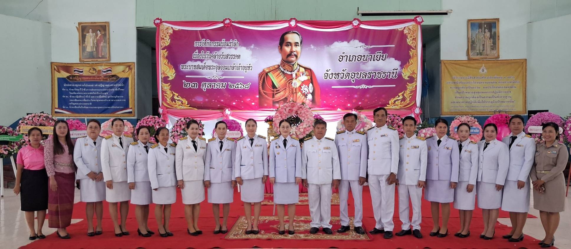 เข้าร่วมรัฐพิธี วางพวงมาลาถวายราชสดุดีเนื่องในวันคล้ายวันสวรรคต พระบาทสมเด็จพระจุลจอมเกล้าเจ้าอยู่หัว “วันปิยะมหาราช” โดยมีนางสาวอัจฉรา สกุลศักดิ์ถาวร นายอำเภอนาเยีย เป็นประธานรัฐพิธี ณ หอประชุมอำเภอนาเยีย