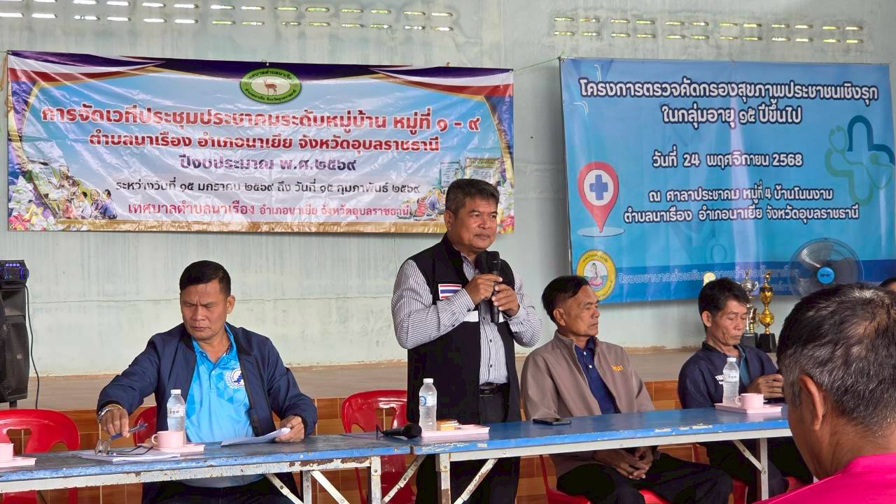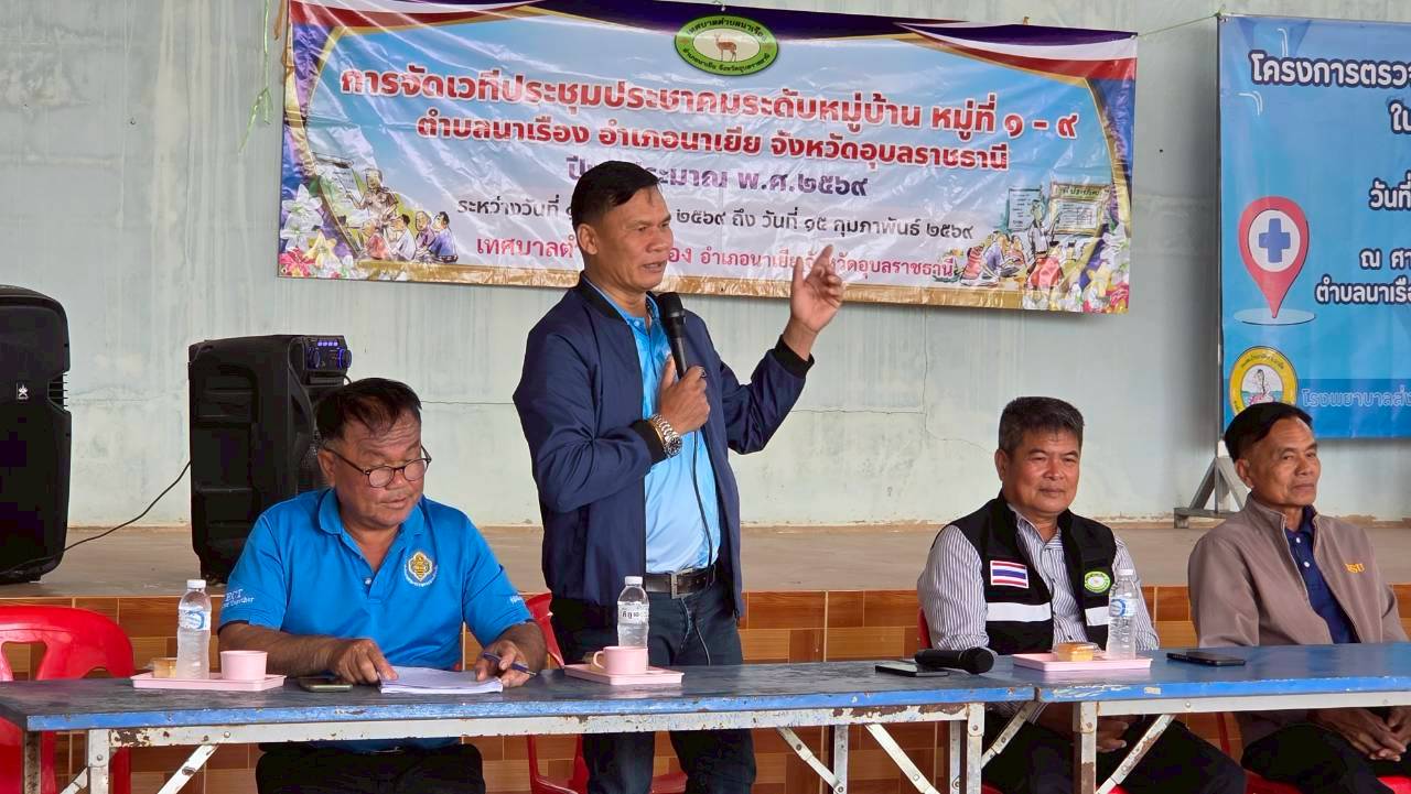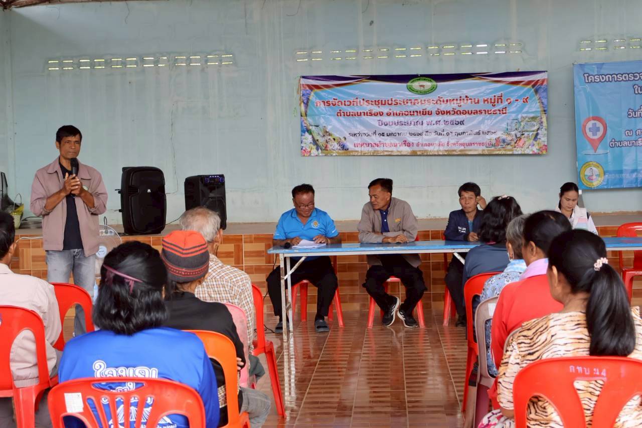 เวทีประชุมประชาคมระดับหมู่บ้าน หมู่ที่ 4 บ้านโนนงาม ตำบลนาเรือง อำเภอนาเยีย จังหวัดอุบลราชธานี