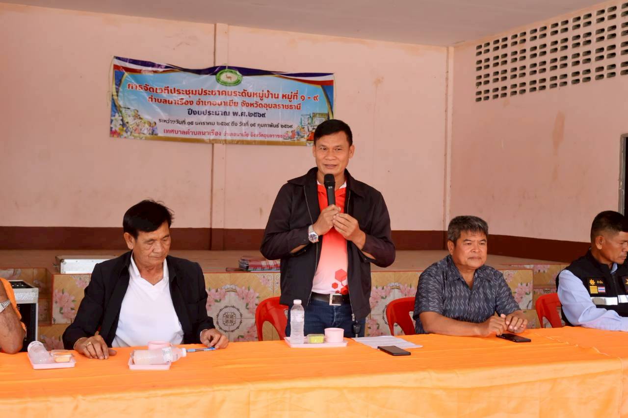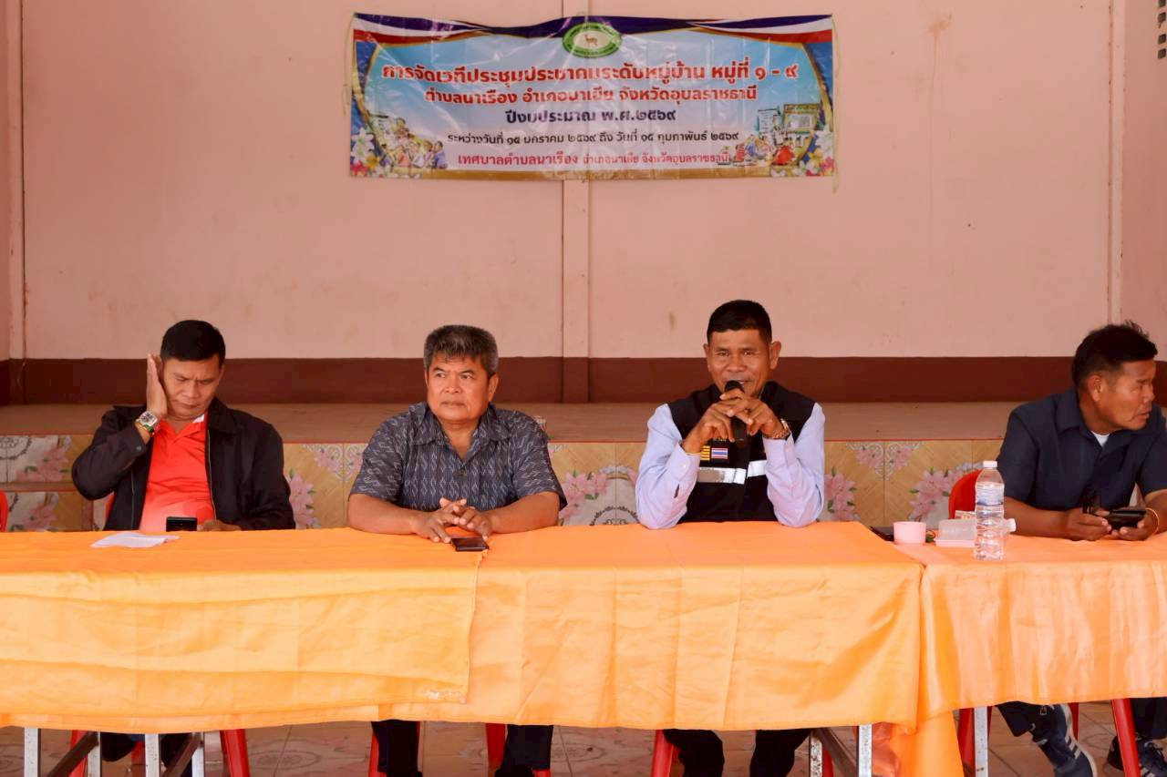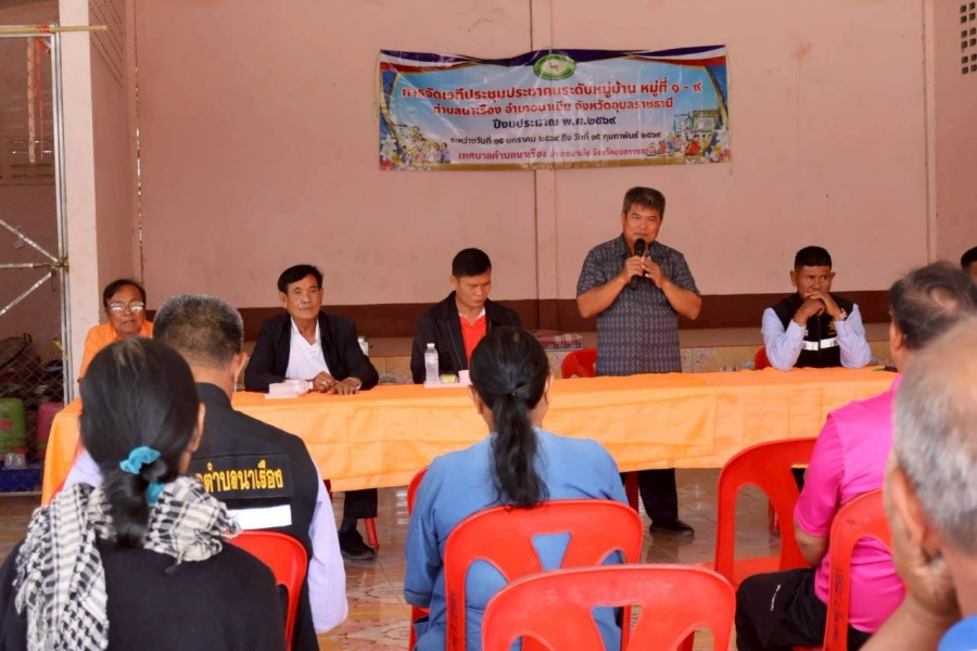 เวทีประชุมประชาคมระดับหมู่บ้าน หมู่ที่ 7 บ้านนาเรืองน้อย ตำบลนาเรือง อำเภอนาเยีย จังหวัดอุบลราชธานี