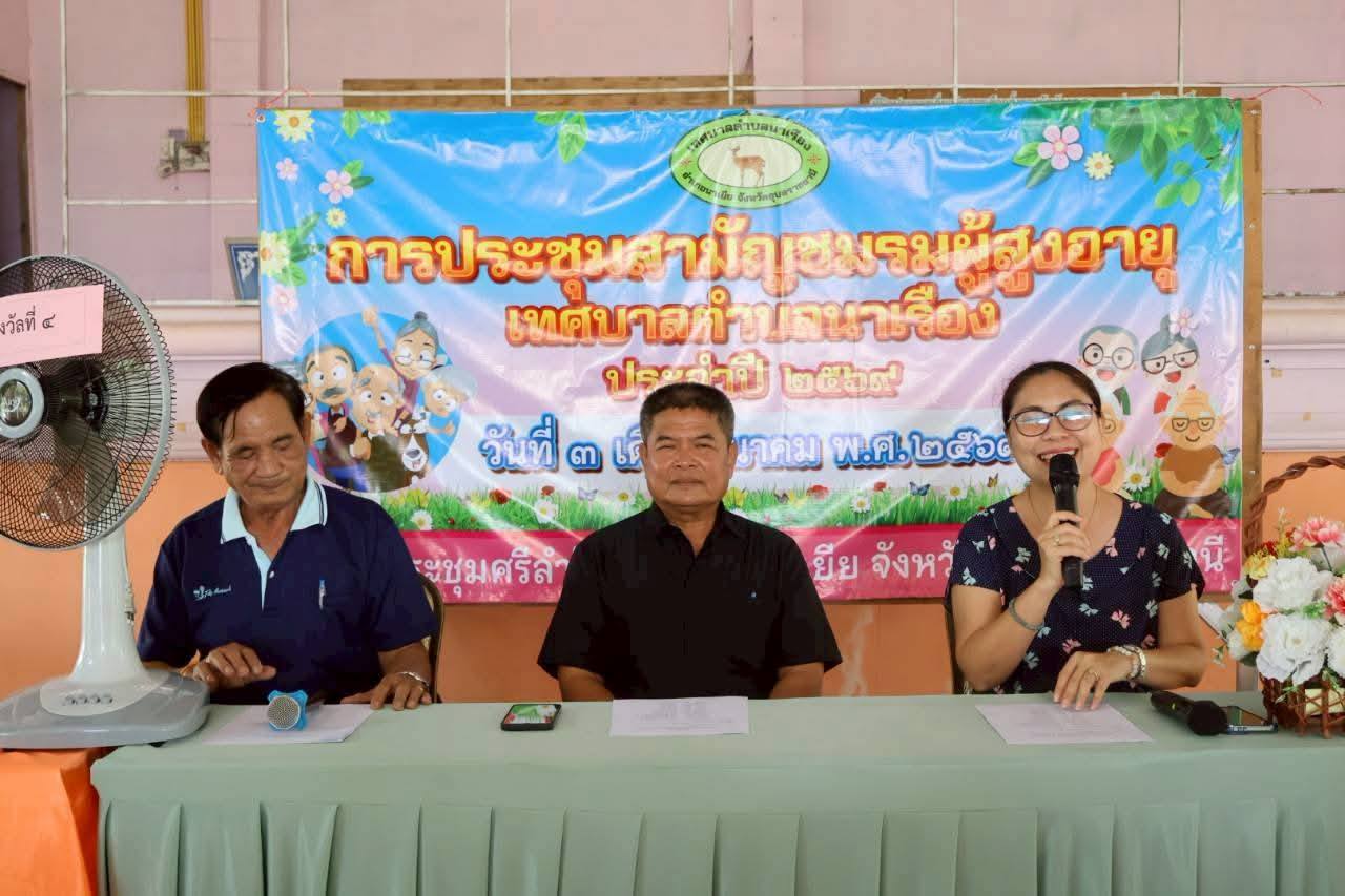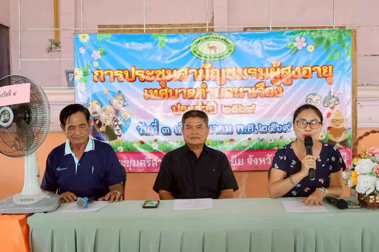 เทศบาลตำบลนาเรืองได้ดำเนินการประชุมสามัญชมรมผู้สูงอายุเทศบาลตำบลนาเรือง ประจำปี 2569 เพื่อรายงานสถานะการเงินชมรมผู้สูงอายุเทศบาลตำบลนาเรือง และ แจ้งการชำระค่าบำรุงชมรมฯ รายปี ตามระเบียบข้อบังคับ