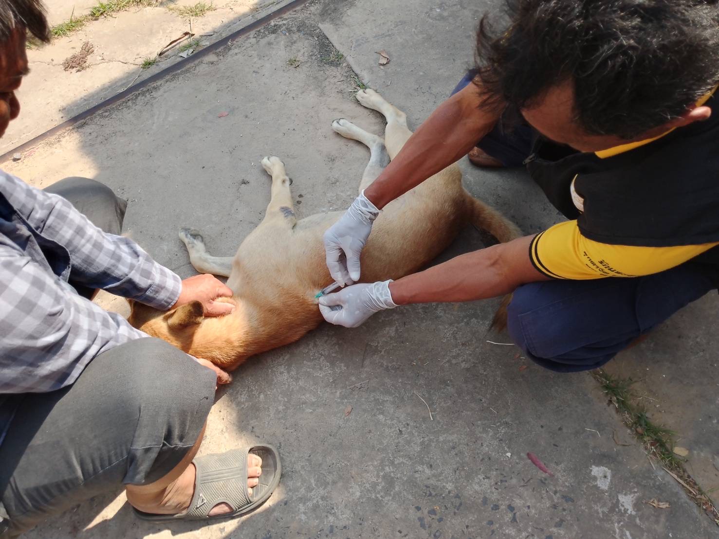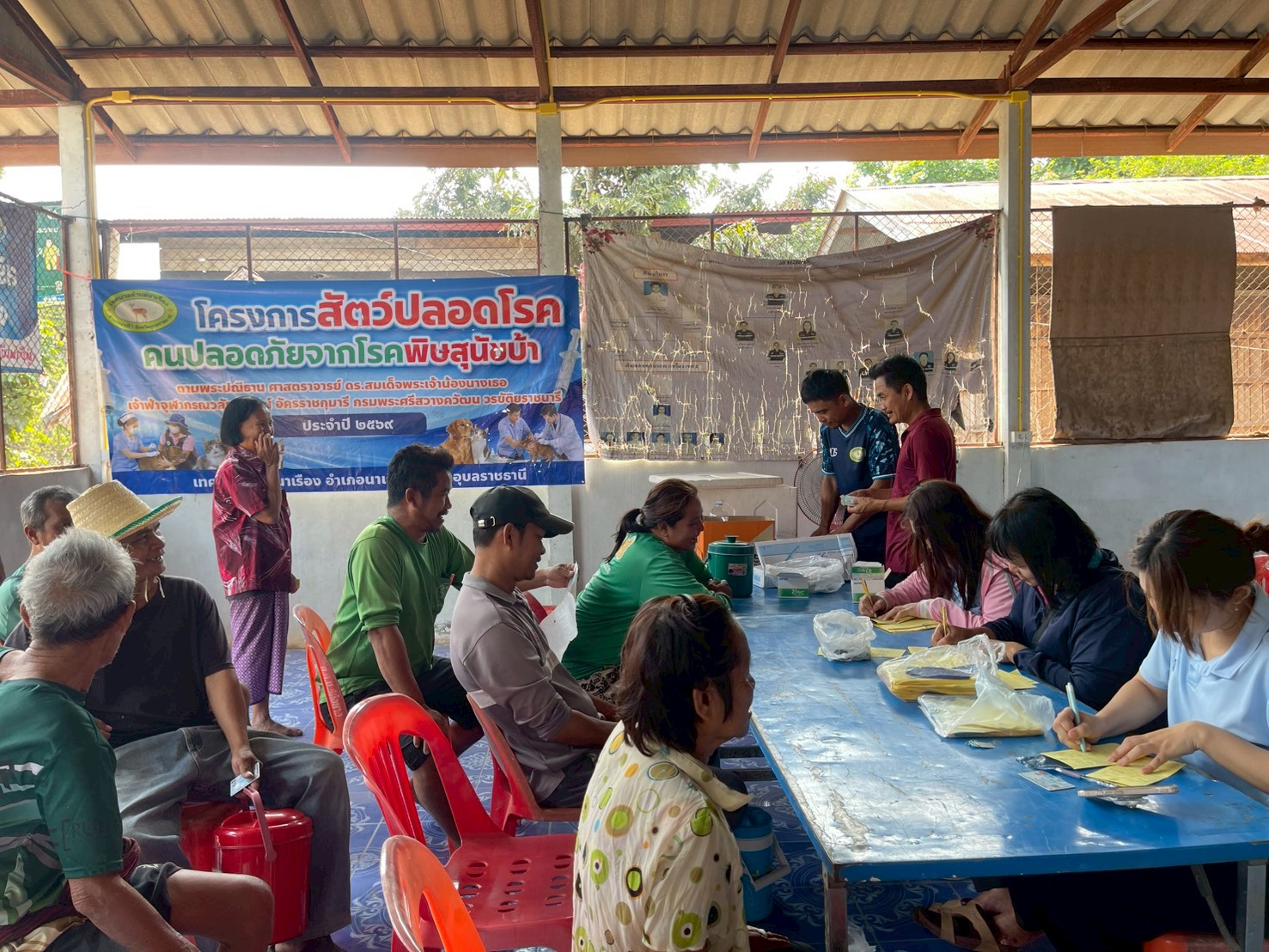 งานสาธารณสุข เทศบาลตำบลนาเรือง ร่วมกับ ปศุสัตว์อำเภอนาเยีย ลงพื้นที่ออกให้บริการฉีดวัคซีนป้องกันโรคพิษสุนัขบ้าฯ ประจำปีงบประมาณ พ.ศ.2569