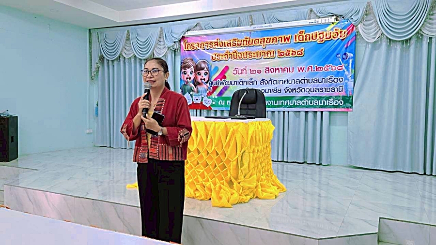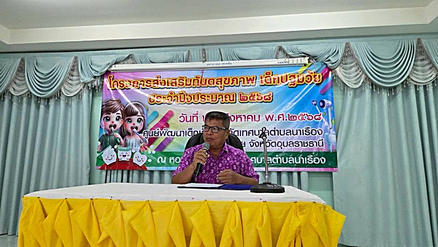 วันพฤหัสบดี, 21 สิงหาคม 2568 14:06เมื่อวันที่ 21 สิงหาคม 2568 นายสมพงษ์ ตันสุ นายกเทศมนตรีตำบลนาเรือได้เป็นประธานเปิดโครงการส่งเสริมทันตสุขภาพเด็กปฐมวัย ประจำปีงบประมาณ 2568 และนางสาวพิมพาสืบสมาน ปลัดเทศบาลตำบลนาเรือ ได้กล่าวโอวาทพบปะกับ ผู้ปกครองและเด็กๆปฐมวัย ในเขตเทศบาลตำบลนาเรือง