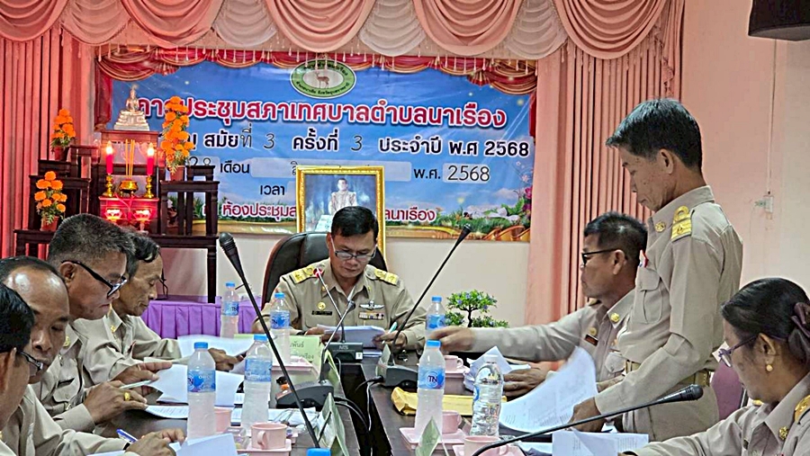 วันพฤหัสบดี, 28 สิงหาคม 2568 14:39วันพฤหัสบดีที่ 28 สิงหาคม 2568 เทศบาลตำบลนาเรือง ได้ดำเนินการประชุมสภาสมัยสามัญที่ 3 ครั้งที่ 3 เพื่อเห็นชอบร่างเทศบัญญัติงบประมาณรายจ่ายประจำปี 2569 วาระ 2 และ 3 เพื่อตราเป็นเทศบัญญัติงบประมาณรายจ่ายประจำปี 2569