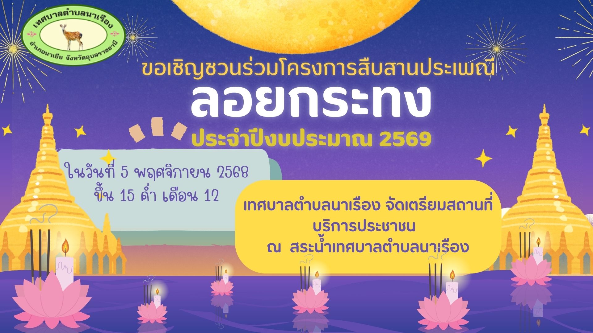 ขอเชิญชวนร่วมโครงการสืบสานประเพณีลอยกระทง ประจำปีงบประมาณ 2569