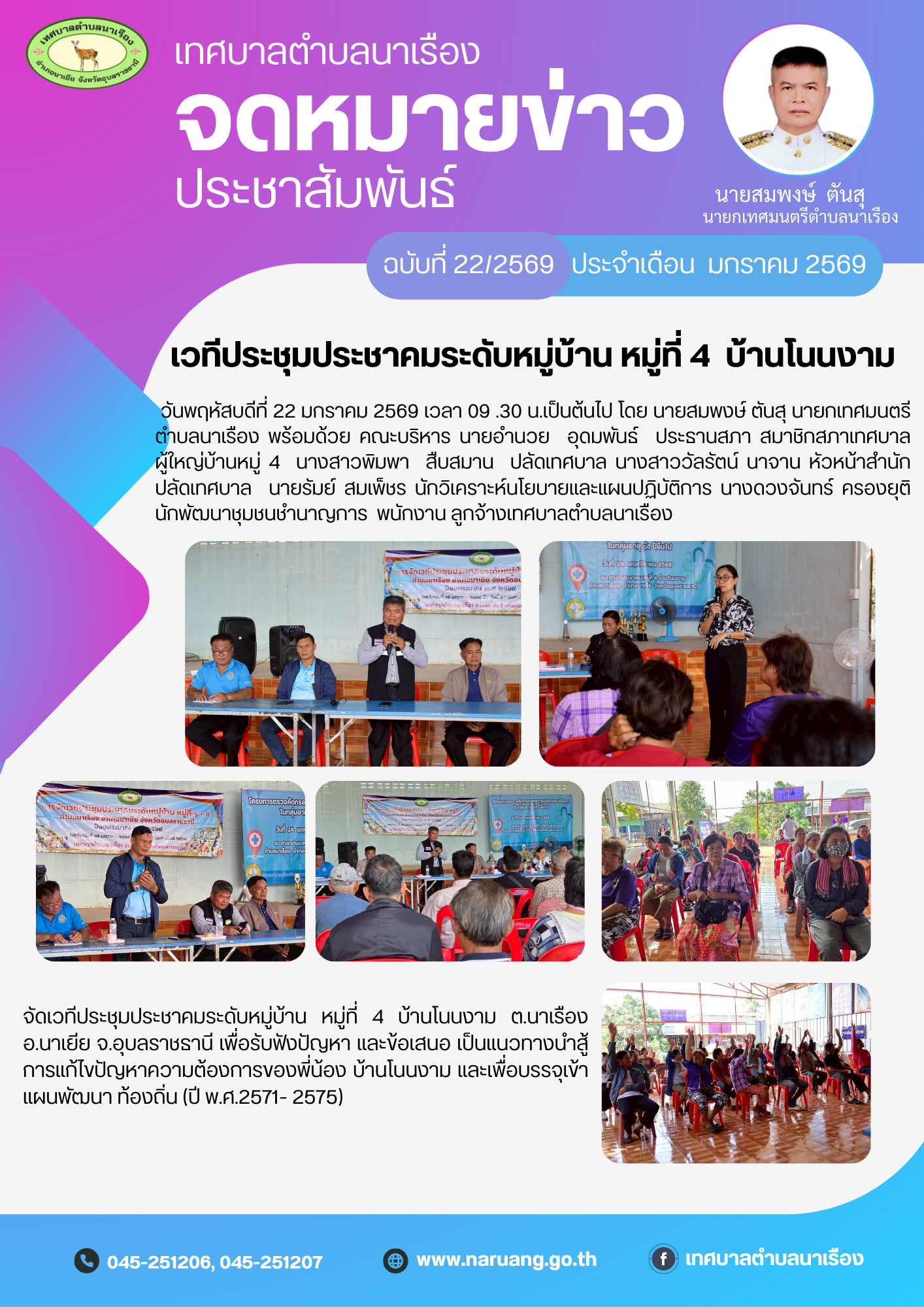 วันพฤหัสบดี, 22 มกราคม 2569 15:26วันศุกร์ที่ 22 มกราคม 2569 เวลา 09.00 น. เป็นต้นไป ณ ศาลาประชาคม หมู่ที่ 4
