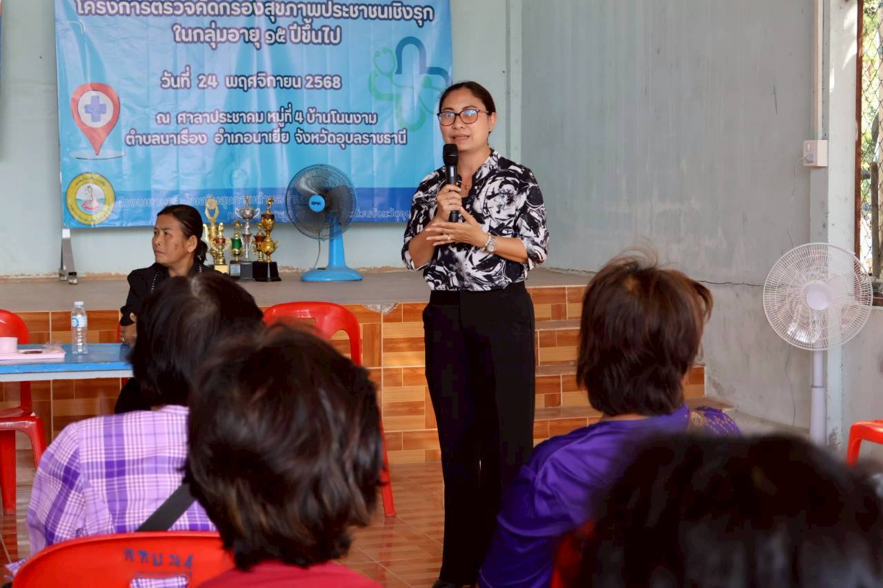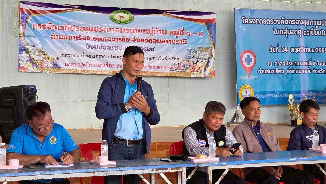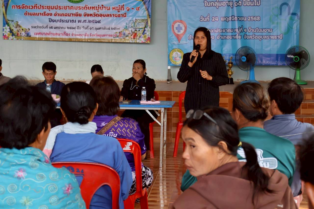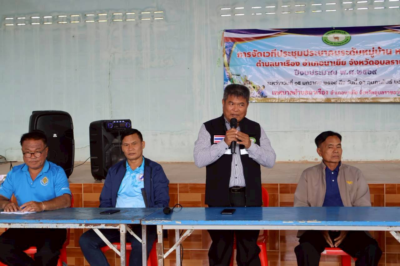 เวทีประชุมประชาคมระดับหมู่บ้าน หมู่ที่ 4 บ้านโนนงาม ตำบลนาเรือง อำเภอนาเยีย จังหวัดอุบลราชธานี