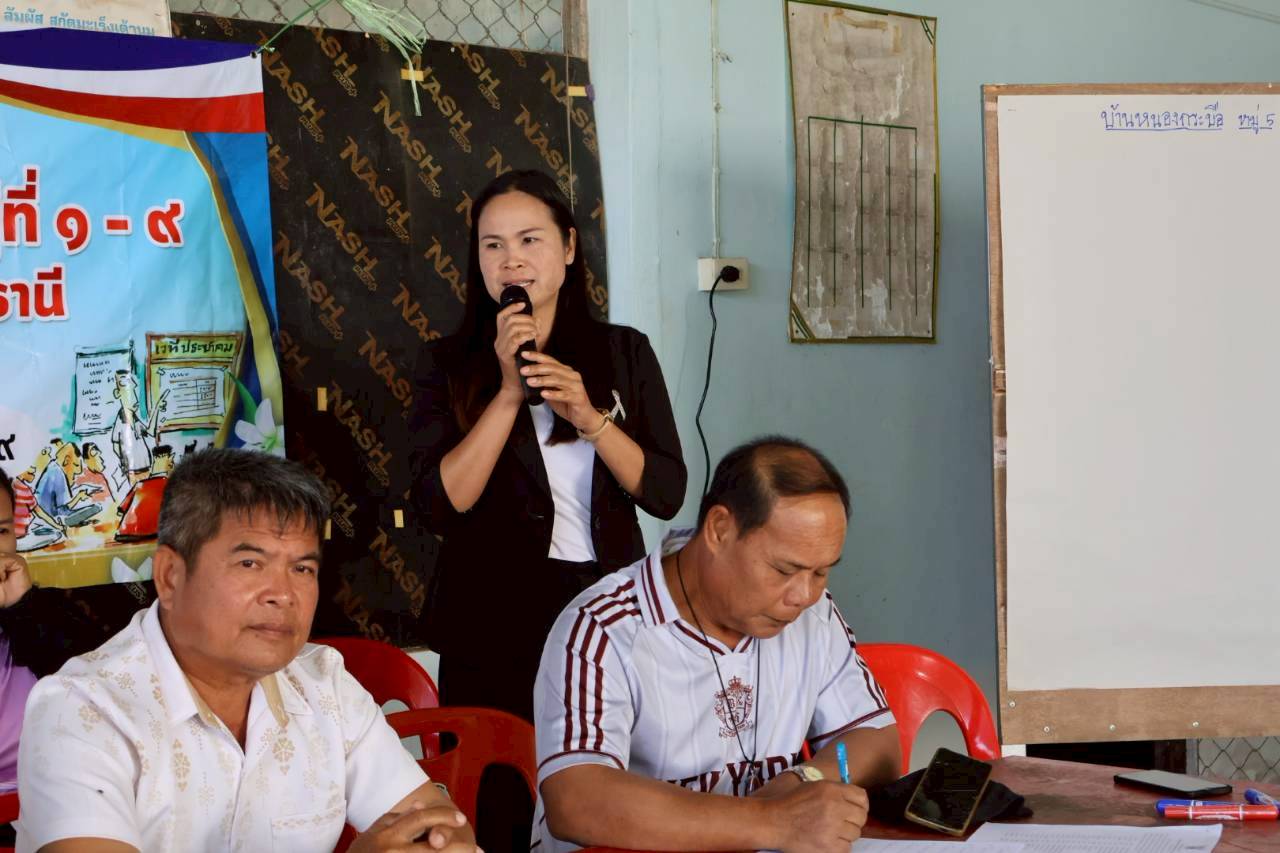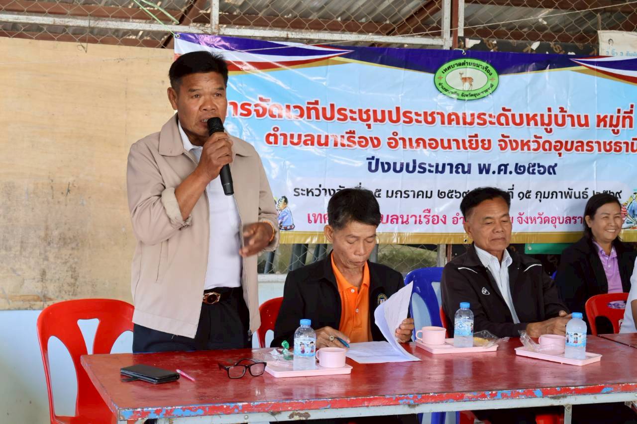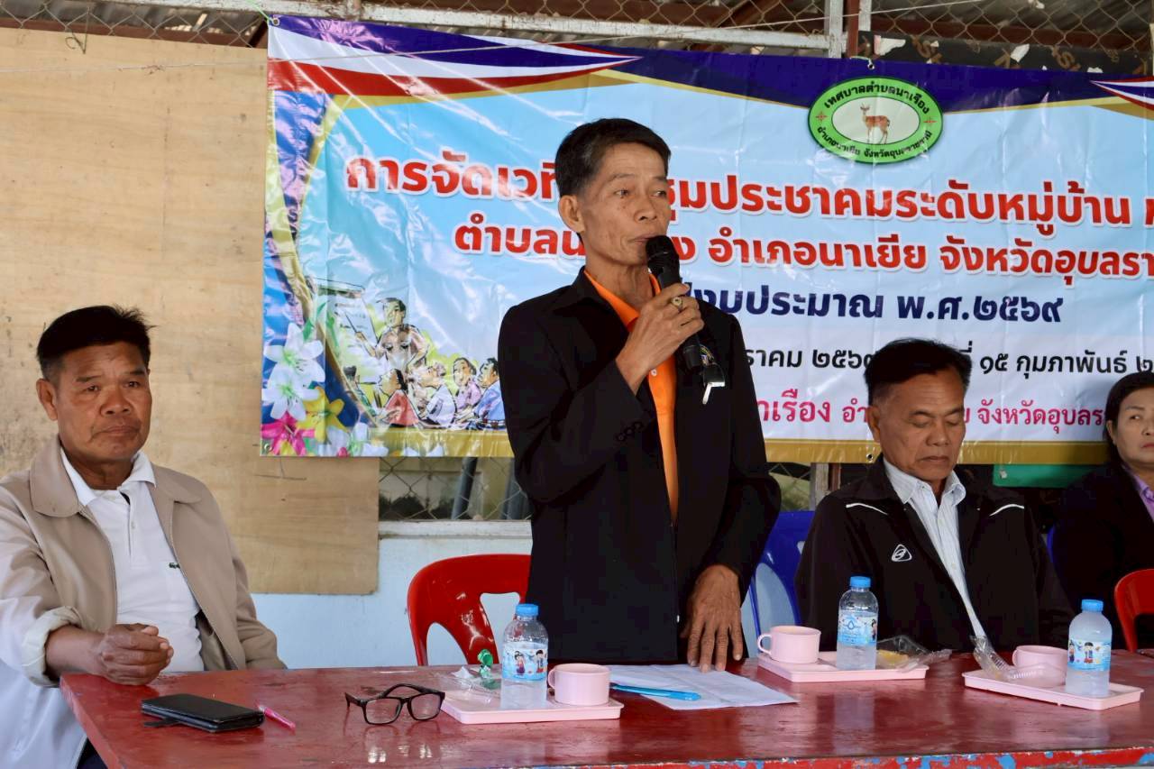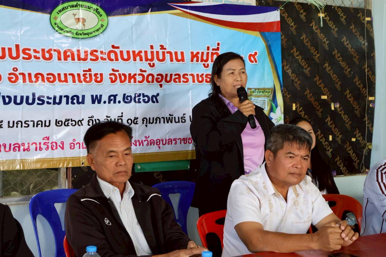 เวทีประชุมประชาคมระดับหมู่บ้าน หมู่ที่ 5 บ้านหนองกระบือ ตำบลนาเรือง อำเภอนาเยีย จังหวัดอุบลราชธานี