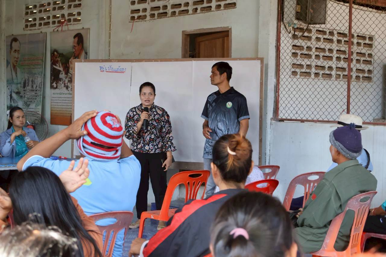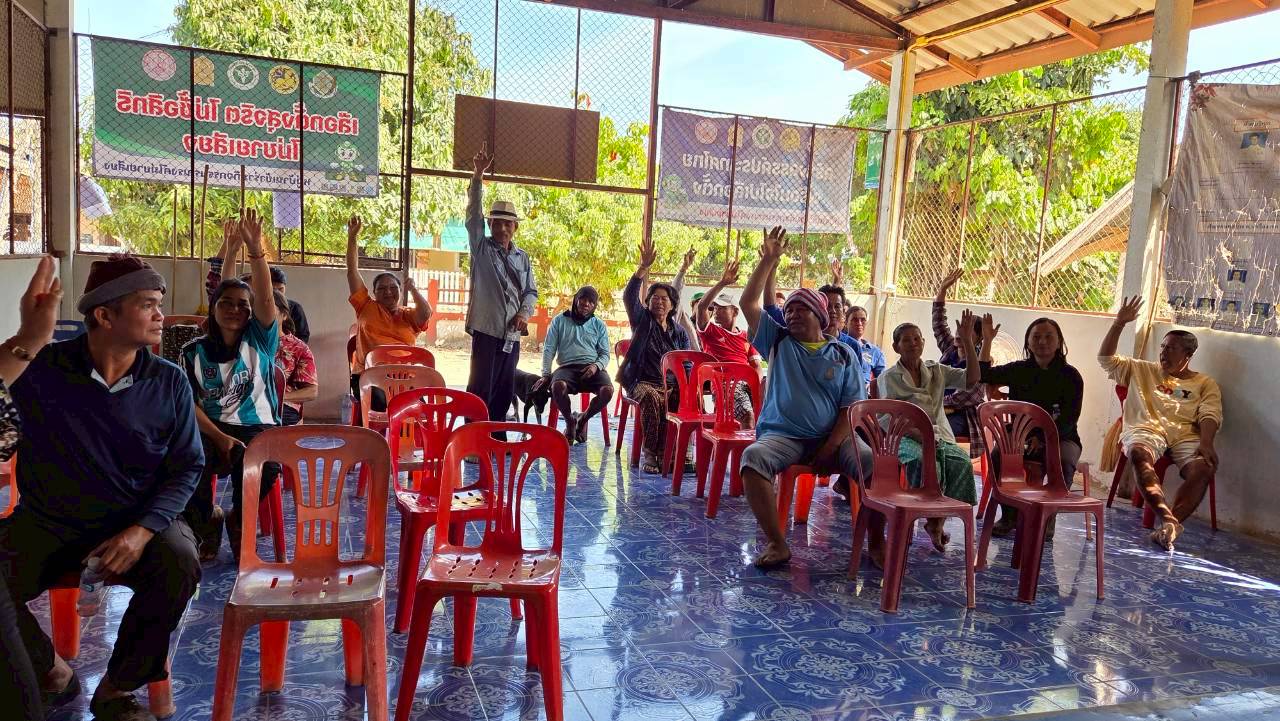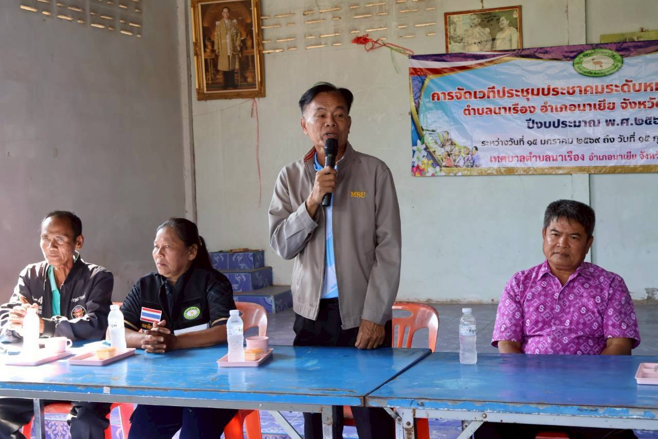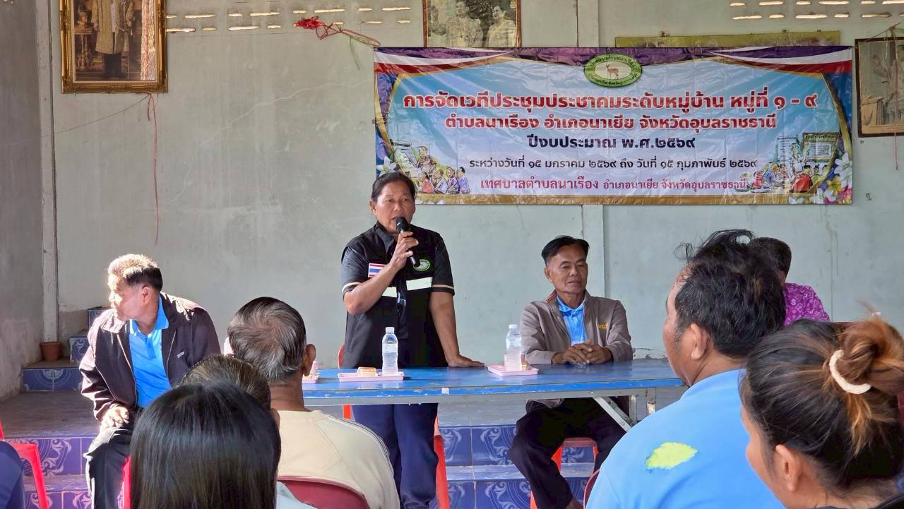 เวทีประชุมประชาคมระดับหมู่บ้าน หมู่ที่ 6 บ้านแก้งยาง ตำบลนาเรือง อำเภอนาเยีย จังหวัดอุบลราชธานี