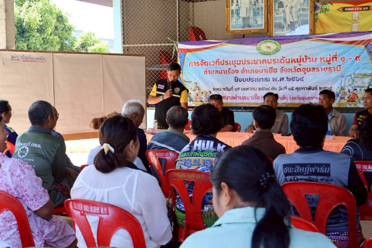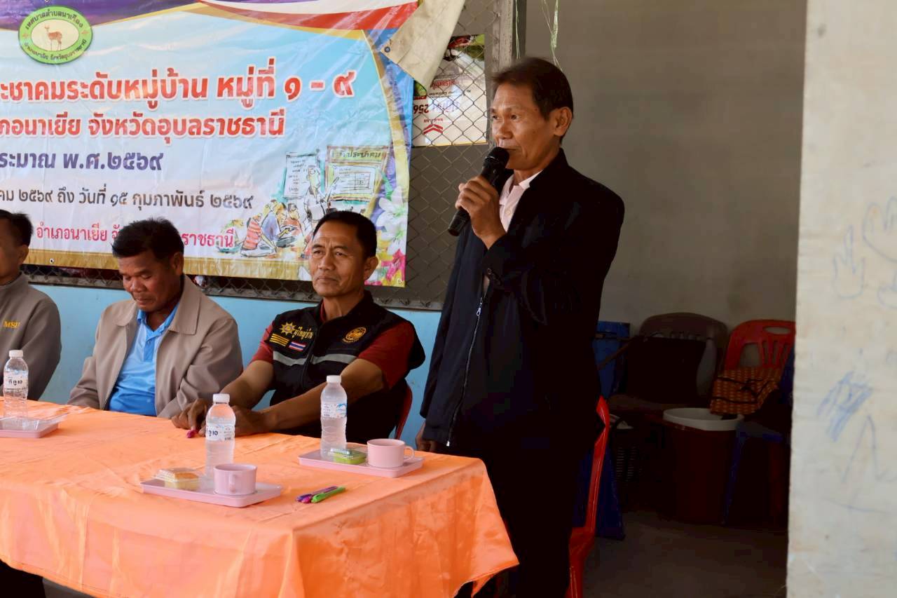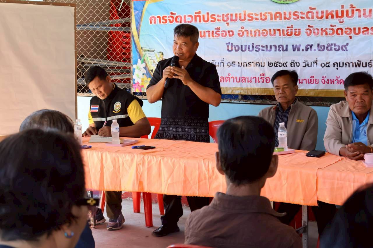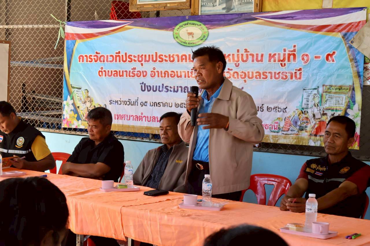 เวทีประชุมประชาคมระดับหมู่บ้าน หมู่ที่ 8 บ้านหินลาดน้อย ตำบลนาเรือง อำเภอนาเยีย จังหวัดอุบลราชธานี