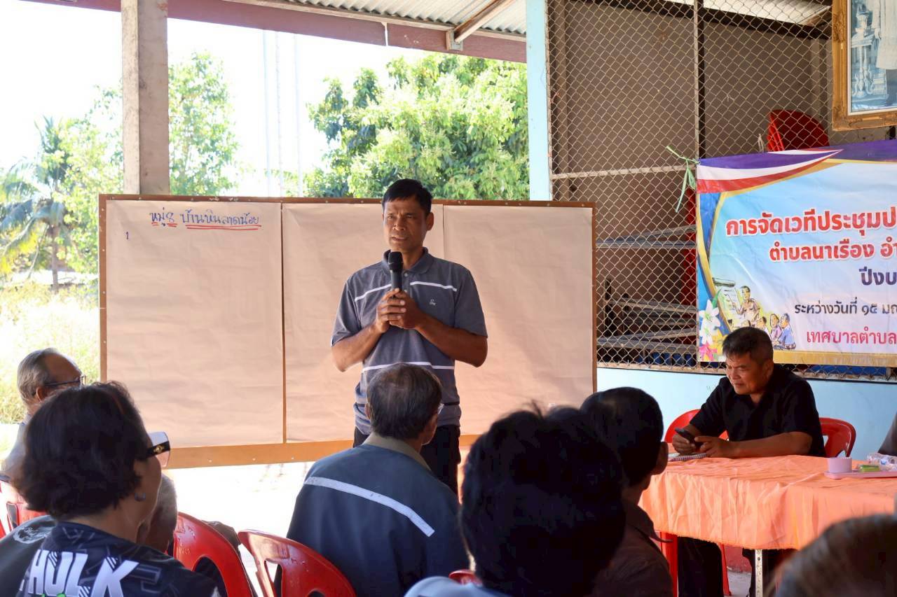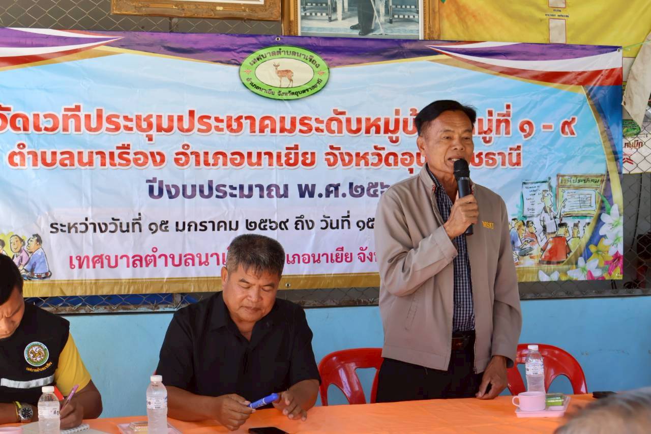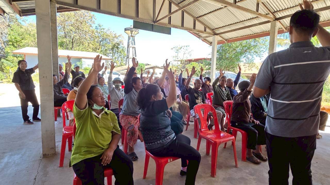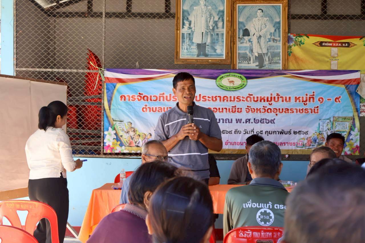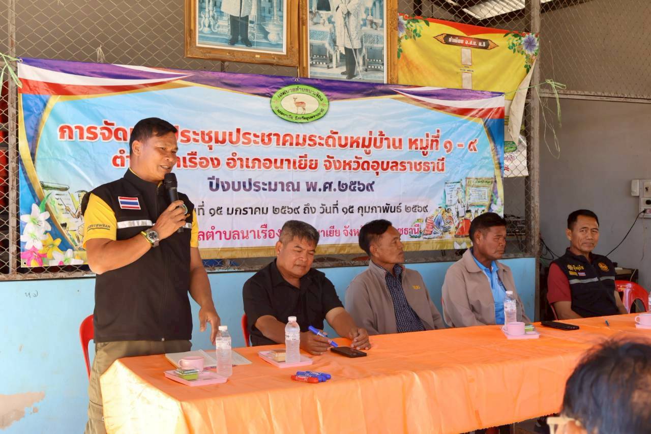 เวทีประชุมประชาคมระดับหมู่บ้าน หมู่ที่ 8 บ้านหินลาดน้อย ตำบลนาเรือง อำเภอนาเยีย จังหวัดอุบลราชธานี