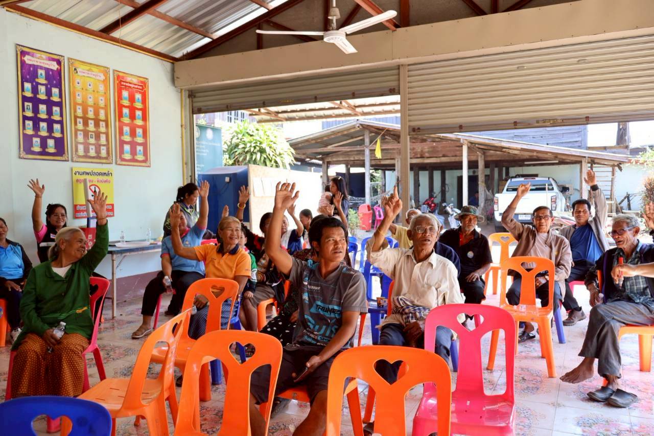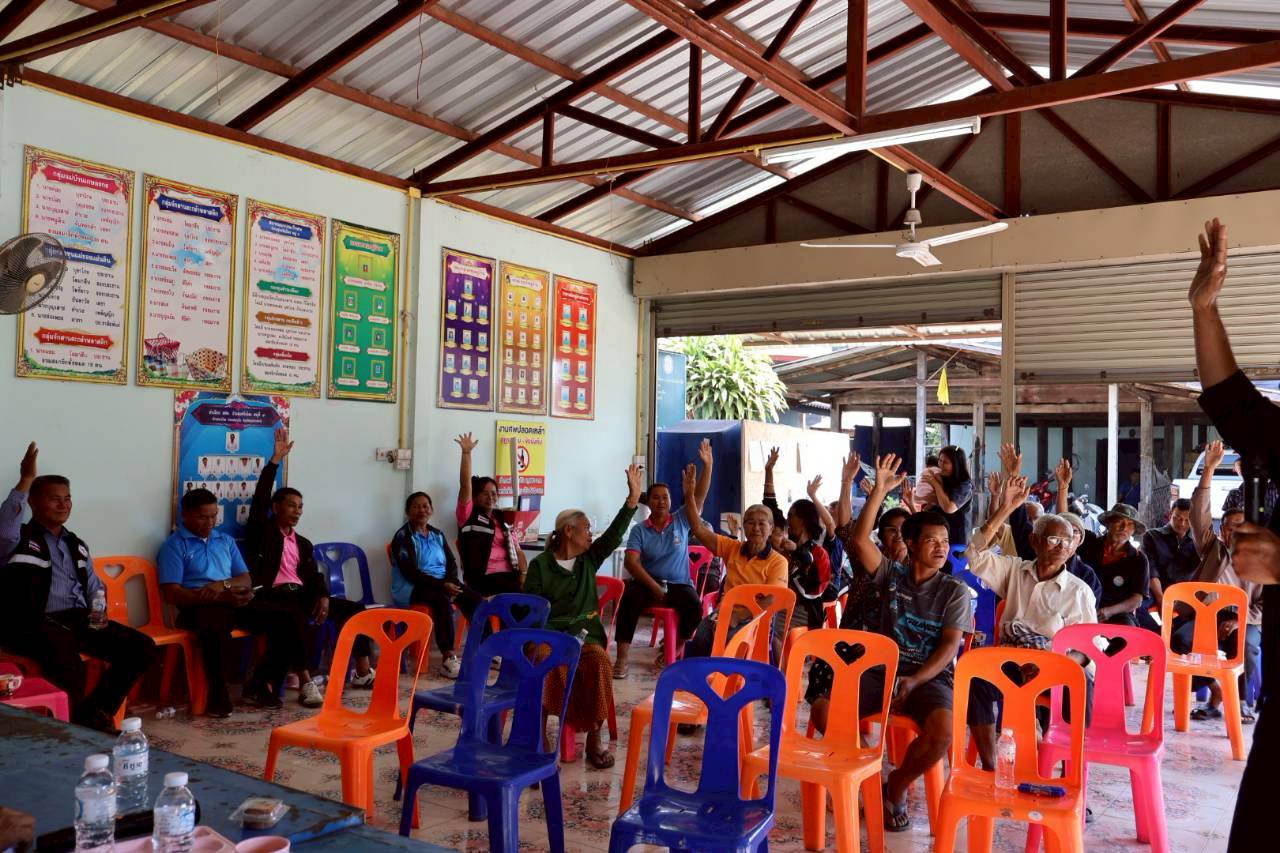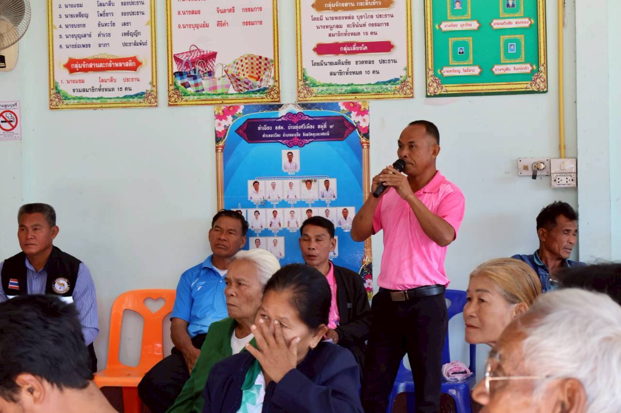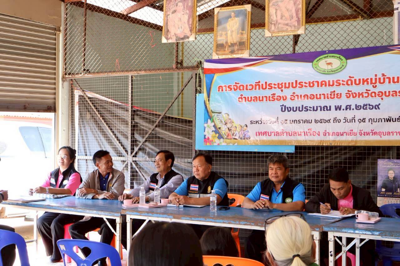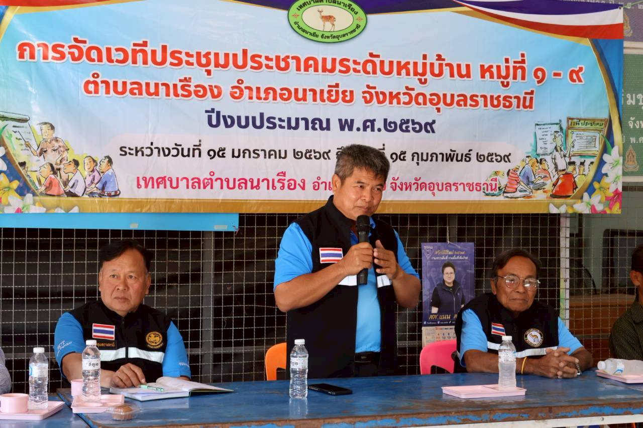 เวทีประชุมประชาคมระดับหมู่บ้าน หมู่ที่ 9 บ้านทุ่งศรีเมือง ตำบลนาเรือง อำเภอนาเยีย จังหวัดอุบลราชธานี