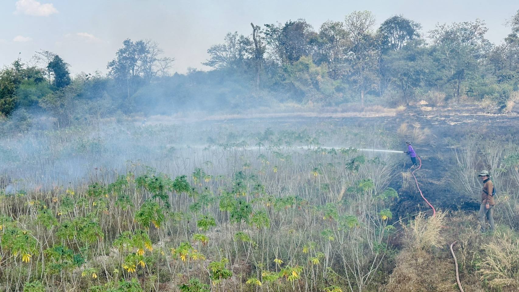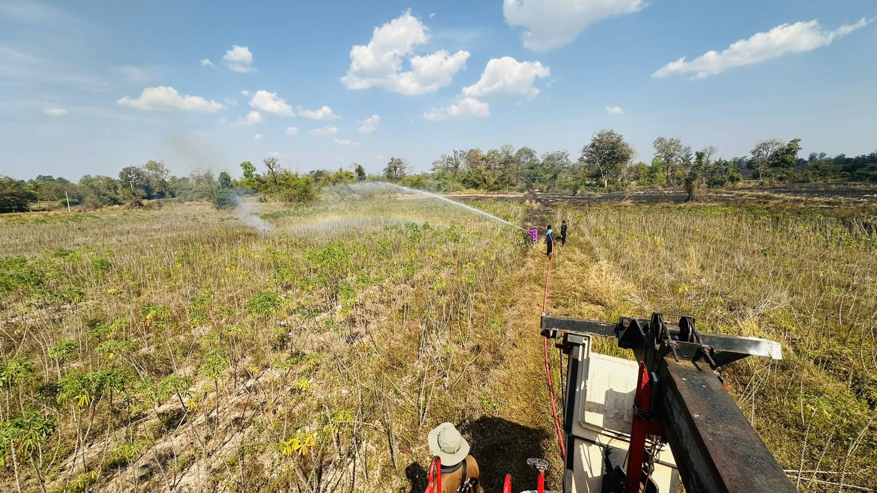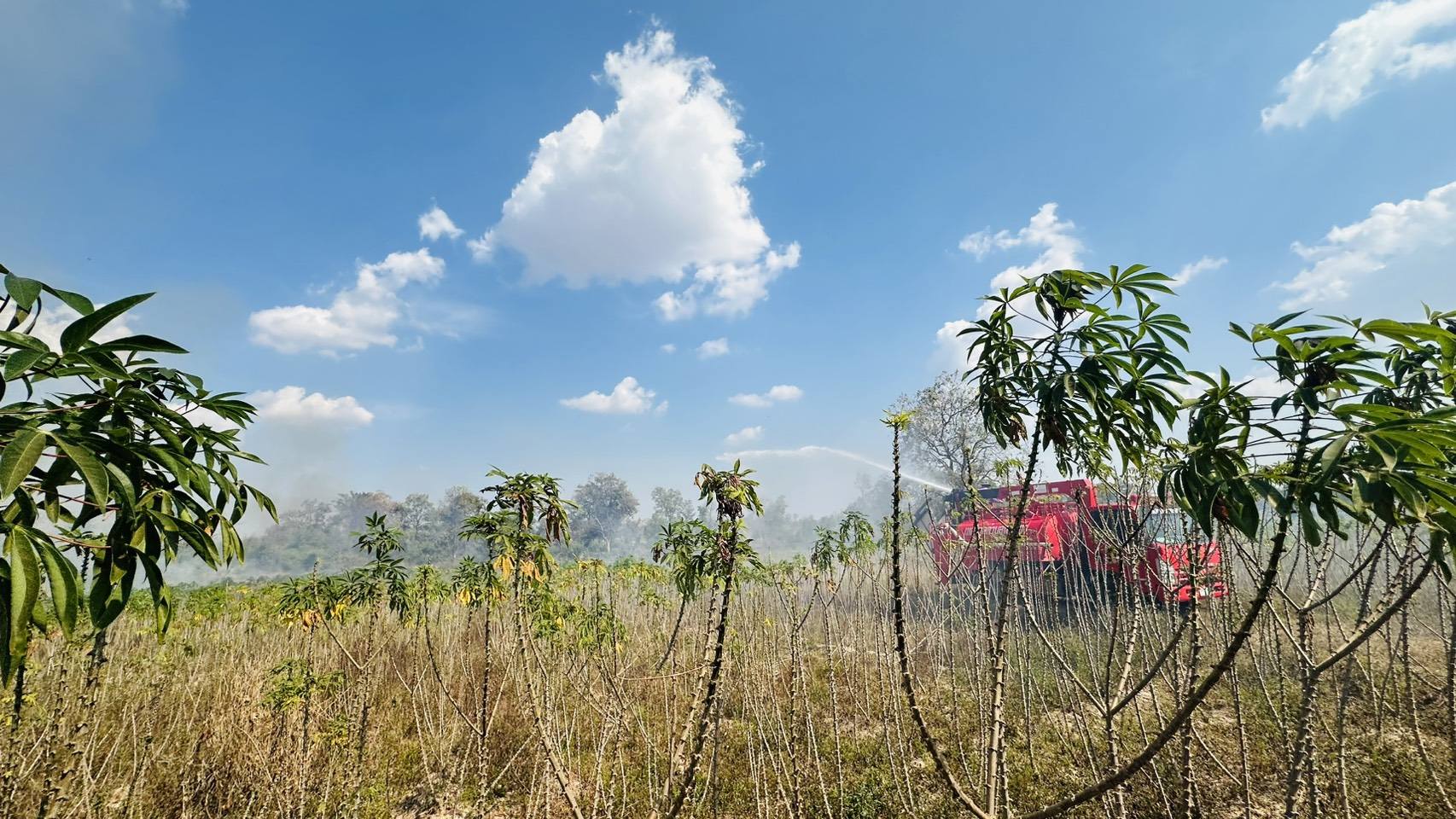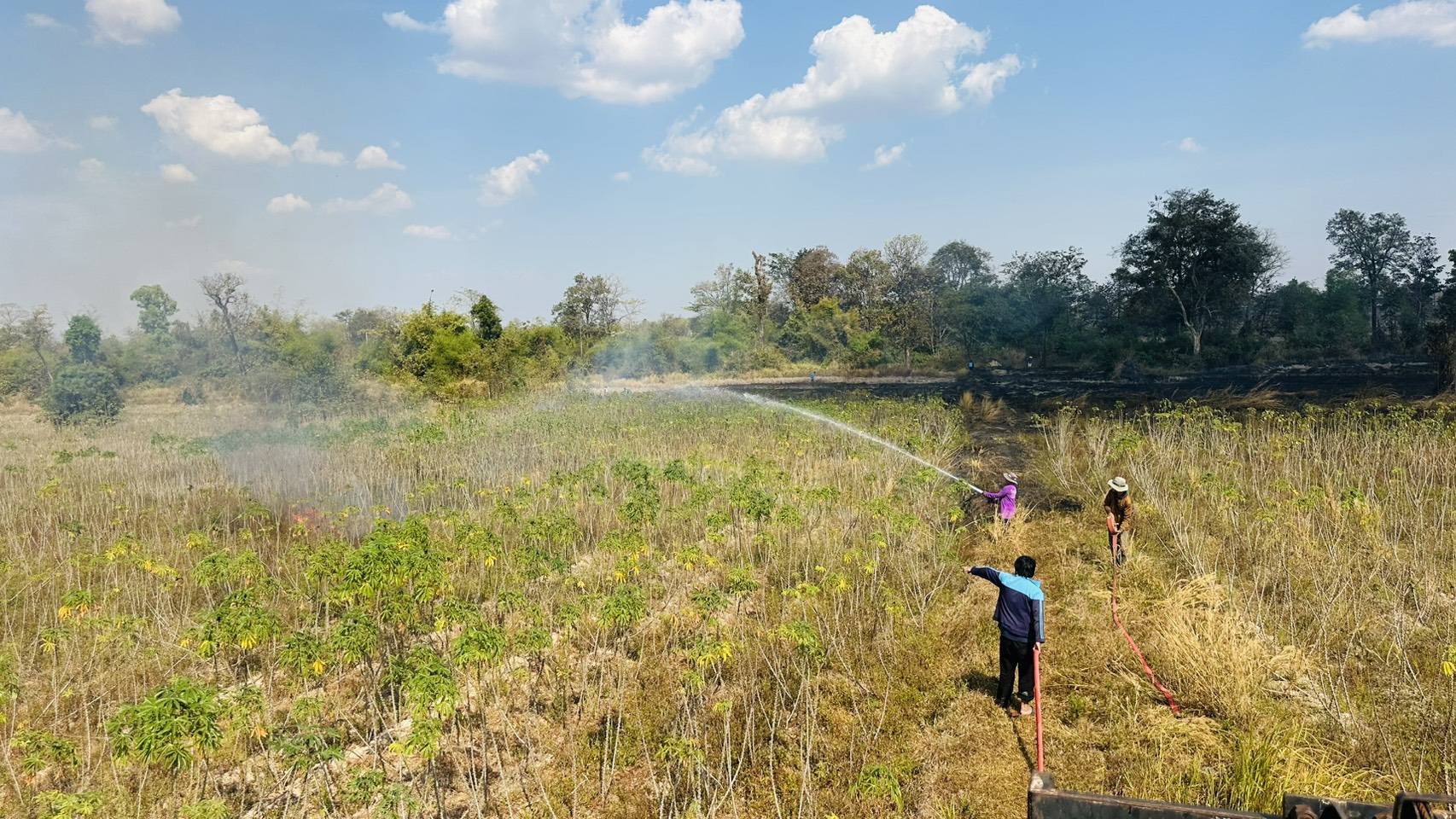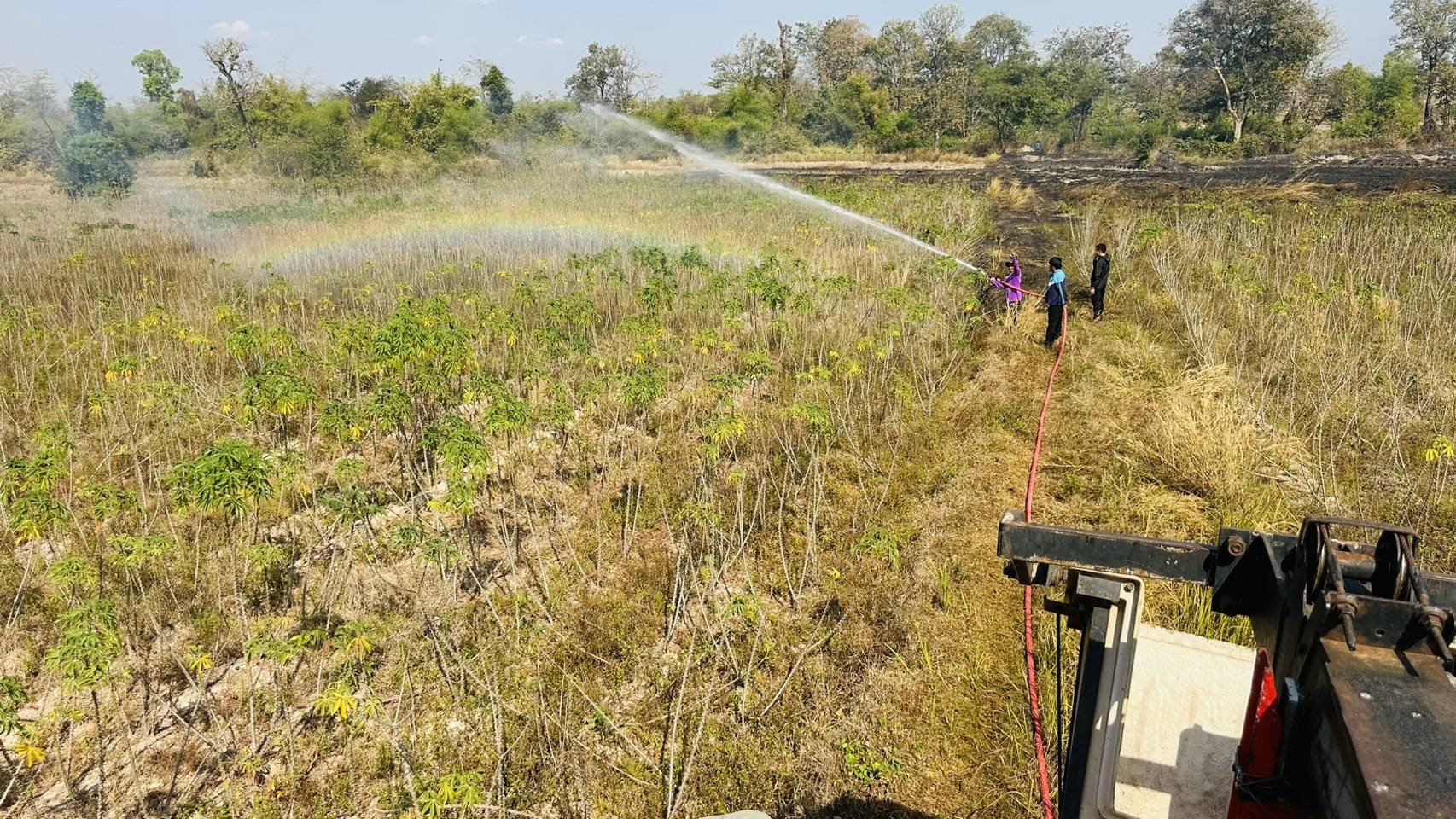 เหตุไฟลามทุ่งพิกัดทุ่งนาซอยร่องงิ้ว หมู่ที่ 4 บ้านโนนงาม ตำบลนาเรือง อำเภอนาเยีย จังหวัดอุบลราชธานี