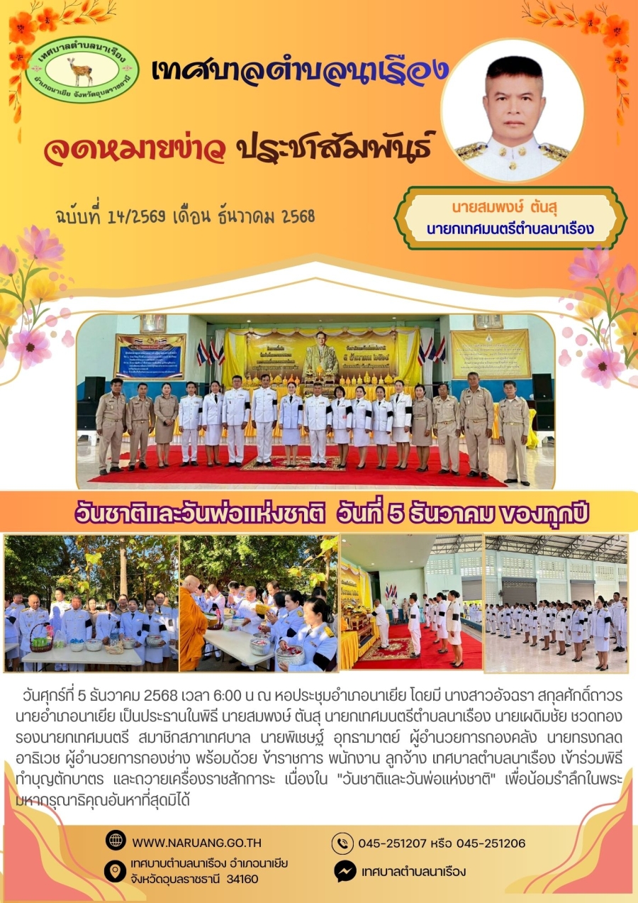 "วันชาติและวันพ่อแห่งชาติ " วันที่ 5 ธันวาคม ของทุกปี วันศุกร์, 05 ธันวาคม 2568 15:17 พิมพ์ อีเมล back to top